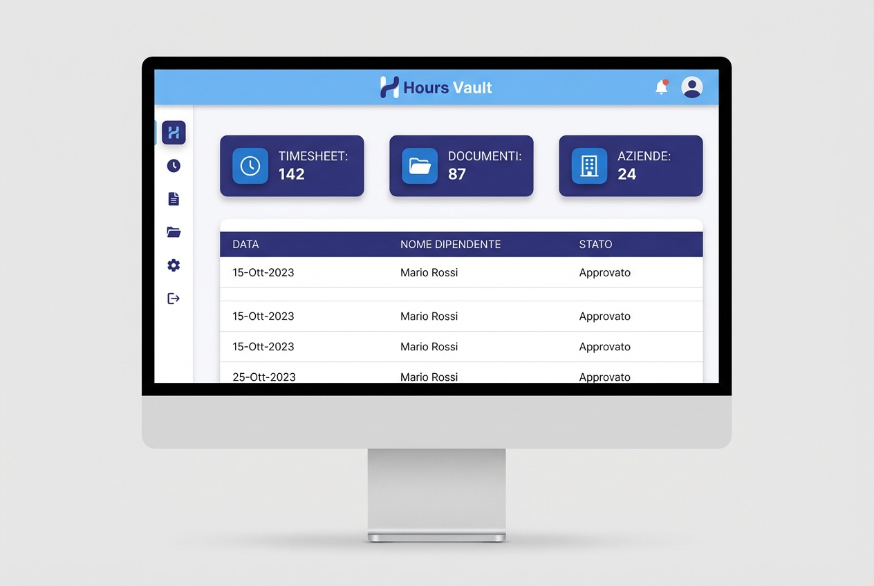 Hours Vault è la piattaforma cloud pensata per studi di consulenza del lavoro che vogliono digitalizzare la gestione delle presenze e la distribuzione dei documenti del personale.